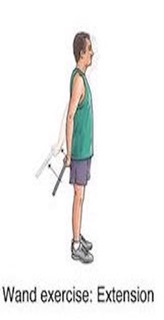 Έκταση με ράβδο, ο ασθενής κρατά τη ράβδο κάθετα πίσω από την πλάτη. Το δεξί χέρι βρίσκεται στην πάνω μεριά και το αριστερό στην κάτω. Κατευθύνει τη ράβδο προς το ταβάνι, μετά προς το πάτωμα και σταμάτα στη μέση [21] .